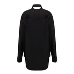 Balenciaga Suspended Effect Shirt Dress. In black cotton poplin, shirt effect suspended from the collar, open back. The dress can be worn two ways.