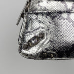 Balenciaga shoulder bag, silver snakeskin pattern, made in italy, button and zipper closure. Measurements: 31x15x8cm