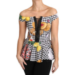 Dolce & Gabbana Black and White Corset Blouse Sicily Lemon Check Top