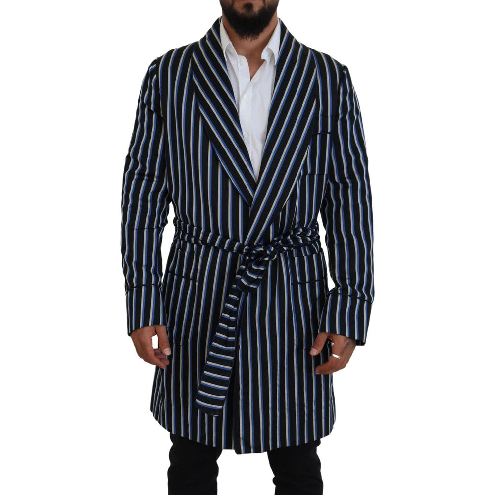 Dolce & Gabbana Black Blue Martini Printed Lining Robe