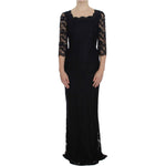 Dolce & Gabbana Black Floral Lace Long Ball Maxi Dress