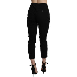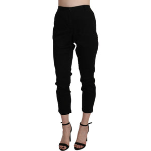 Acht Black High Waist Skinny Cropped Cotton Capri Pant