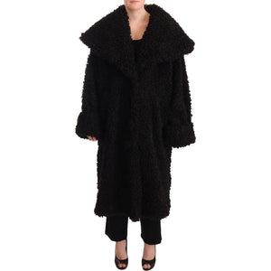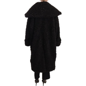 Dolce & Gabbana Black Polyester Fur Trench Coat Jacket