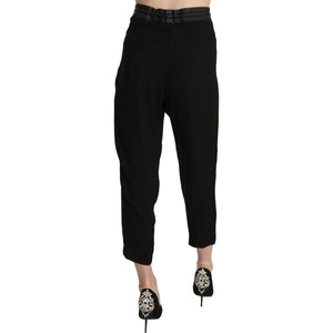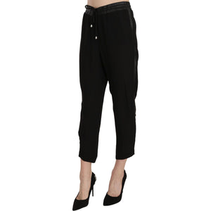 Guess Black Polyester High Waist Cropped Trousers Pants