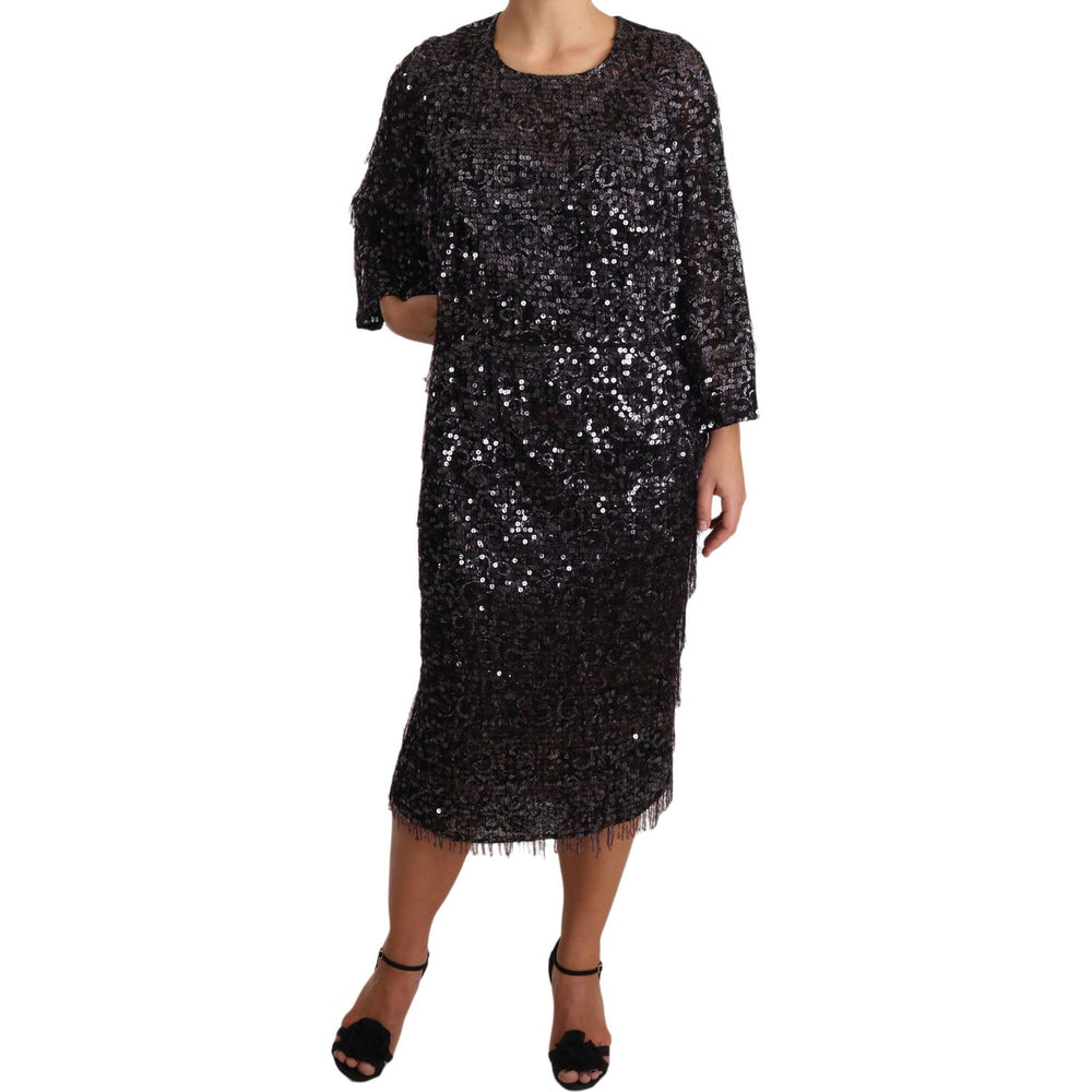 Dolce & Gabbana Black Sequined Long Sleeve Shift Midi Dress