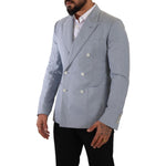 Dolce & Gabbana Blue Cotton Linen Slim Fit Jacket Coat Blazer