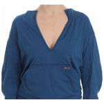 Exte Blue Cotton Top Pullover Deep V-neck Women Sweater