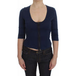 Exte Blue Cotton Top Zipper Deep Crew-neck Sweater