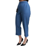Dolce & Gabbana Blue Pleated Wool Cuffed Cropped Trouser Pants
