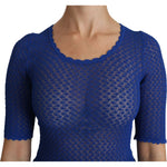 Dolce & Gabbana Blue See Through Round Neck Top Viscose Blouse