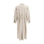 Brunello Cucinelli’s Long Coat is a timelessly elegant garment perfect for any occasion. Featuring a classic collar and a front button closure, it has two flap patch pockets on the chest and two side patch pockets, combining practicality and style. The matching, adjustable waistband allows you to define the silhouette, adding a touch of sophisticated personalization to the design. A versatile and refined garment that combines warmth and luxury.