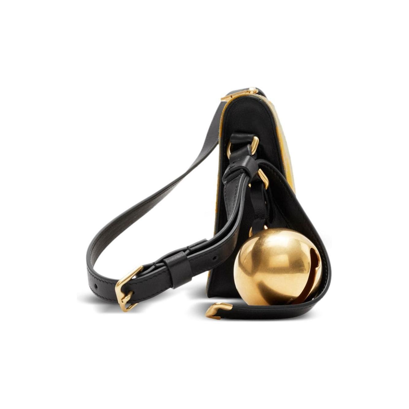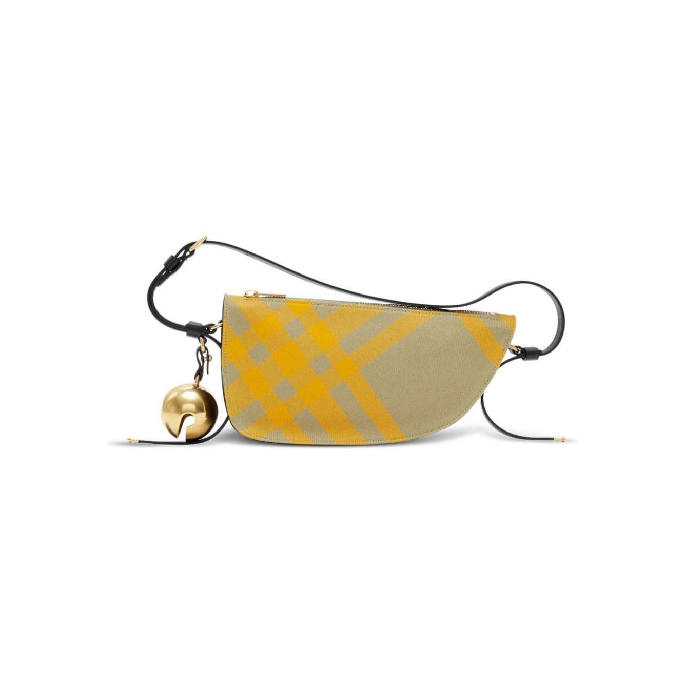 mustard yellow/beige calf leather/lambskin check pattern bell charm adjustable shoulder strap top zip fastening main compartment Shield mini shoulder bag Size and Fit - Width 10,24 in / 26 cm