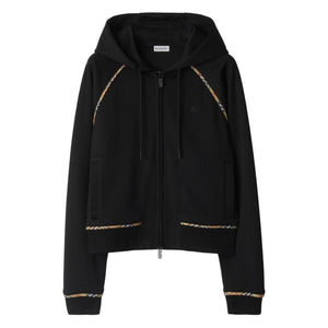 black front two-way zip fastening two side welt pockets drawstring hood signature Equestrian Knight motif Cotton blend zipped hoodie