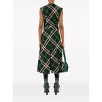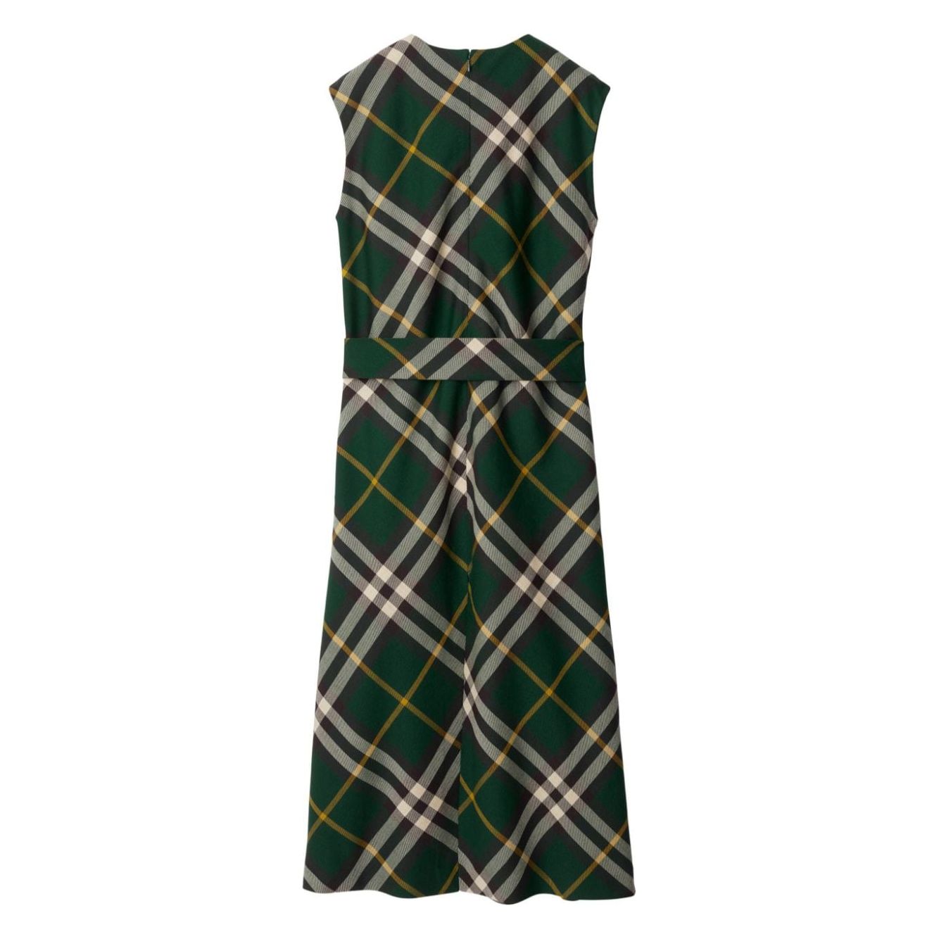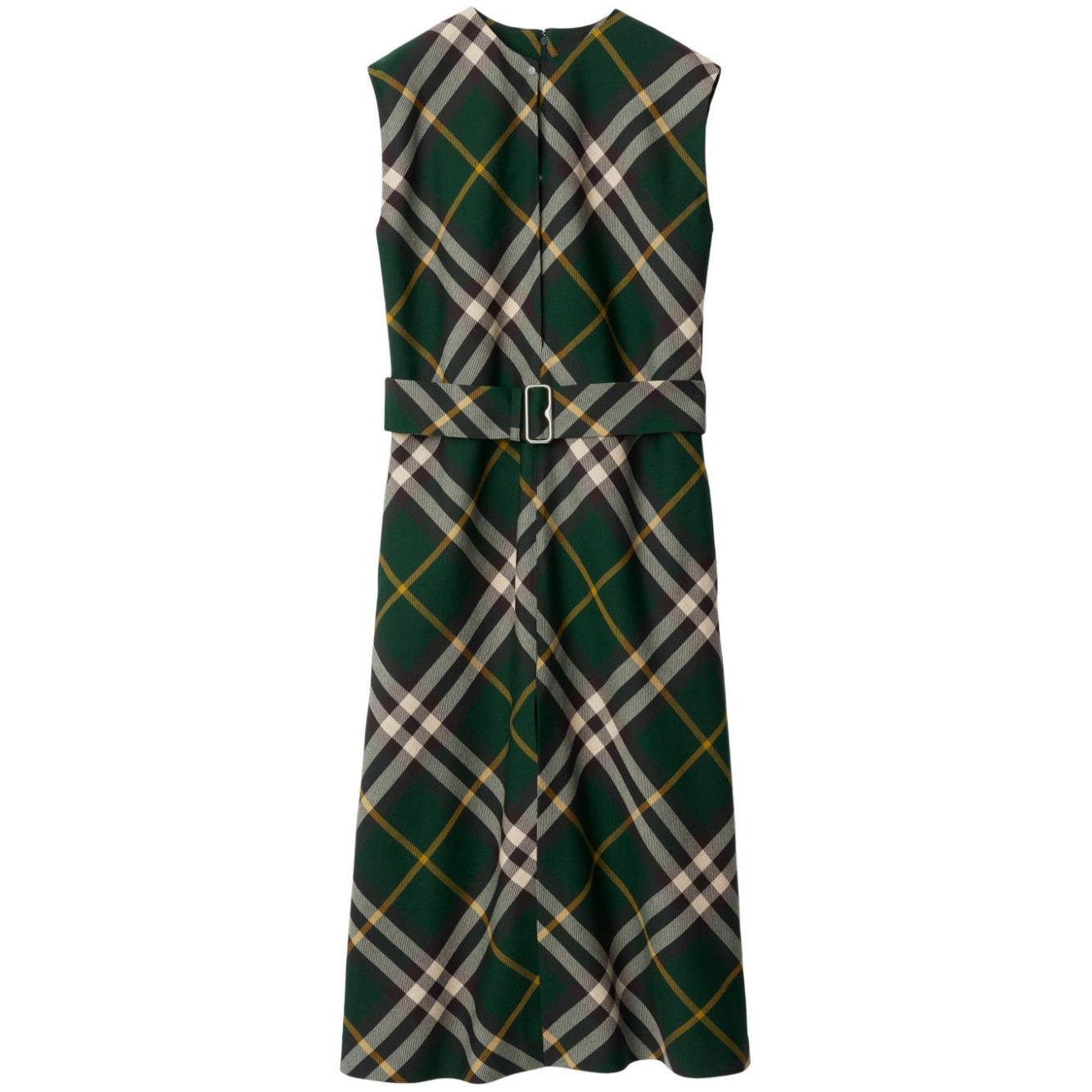 ivy green wool nova check pattern V-neck/round neck press-stud placket belted waist concealed rear hook and zip fastening sleeveless front slit rear slit mid-length silver-tone hardware Check motif wool midi dress Size and Fit - This piece fits true to size. We recommend you get your regular size. Model is 1,75m / 5ft 8in wearing size 8 (UK)