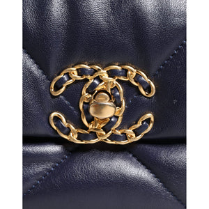 This Chanel Bag Purse 19 2WAY Chain Hand Shoulder Blue Leather Large Quilted Serie 31.