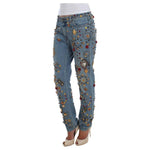 Gorgeous brand new with tags, 100% Authentic Dolce & Gabbana blue wash crystal heart Roses embellished enchanted Sicily boyfriend fit jeans. This item comes from the exclusive MainLine Dolce & Gabbana Collection.