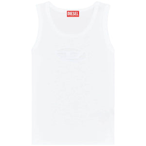 white stretch organic cotton jersey texture Oval D logo plaque crew neck sleeveless straight hem T-Lynys cotton top Size and Fit - LENGTH: 51.0 Centimetres. BUST: 74.0 Centimetres.