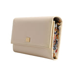 Dolce & Gabbana Beige Leather Trifold Logo Plaque Card Holder Wallet