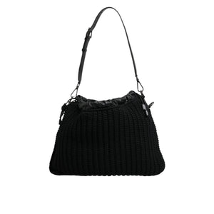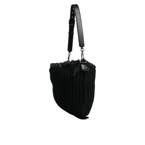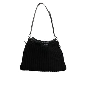 Dolce & Gabbana Black Cashmere Knitted Leather Shoulder Bag