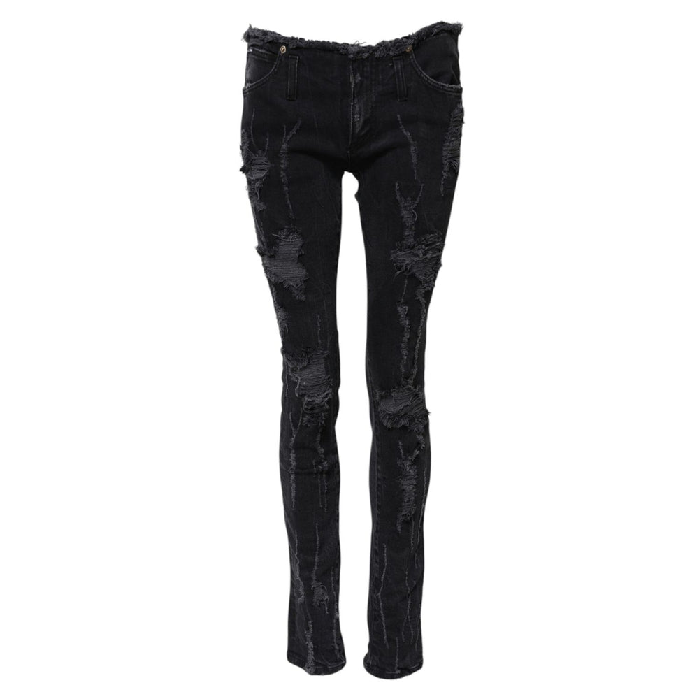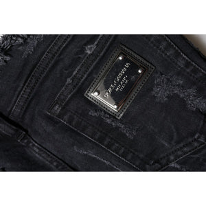Dolce & Gabbana Black Cotton Tattered Skinny Denim Jeans