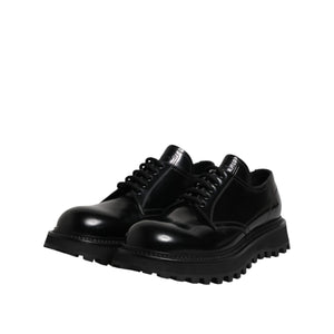 Dolce & Gabbana Black Leather Lace Up Derby Men Dress Shoes
