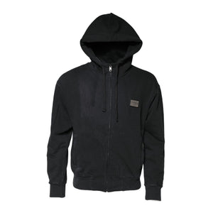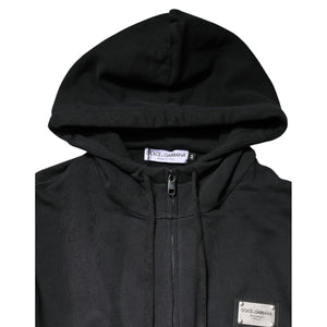 Dolce & Gabbana Black Logo FullZip Hooded Sweatshirt Sweater