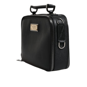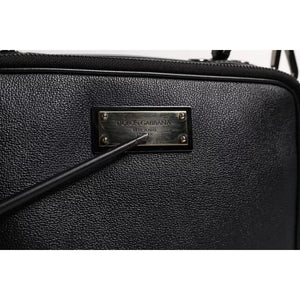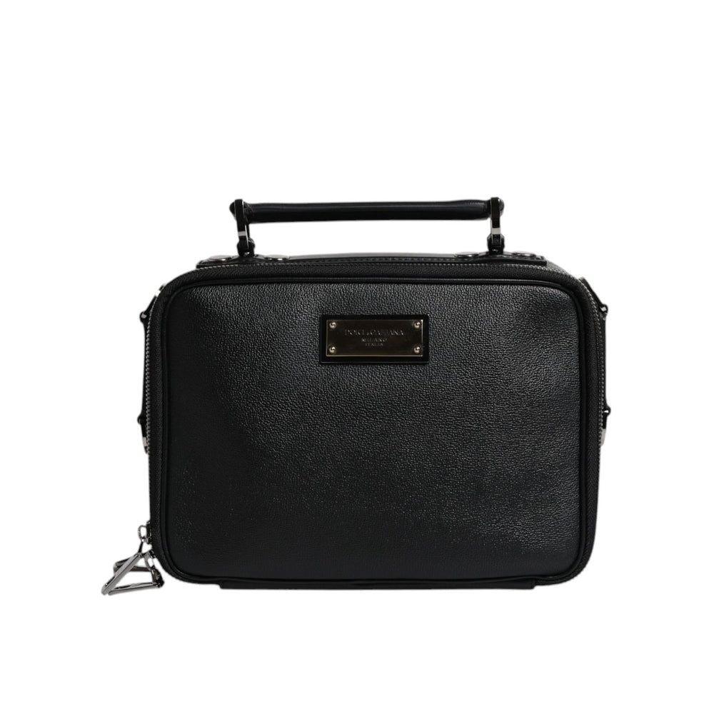 Dolce & Gabbana Black Nylon Leather Logo Top Handle Crossbody Bag
