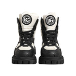 Dolce & Gabbana Black White Padded Lace Up Short Boots Shoes