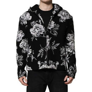 Dolce & Gabbana Black Wool Floral Printed Men Hooded Jacket