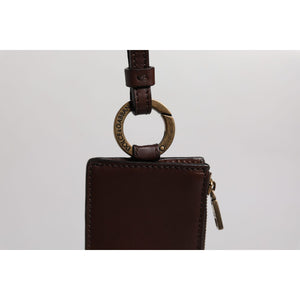 Dolce & Gabbana Brown Calf Leather Lanyard Logo Card Holder Wallet