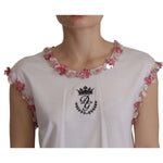 Dolce & Gabbana White DG Crown Floral Sequin T-shirt