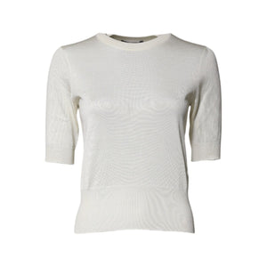 Dolce & Gabbana Cream Short Sleeve Silk Round Neck Blouse Top