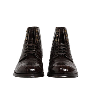 Dolce & Gabbana Dark Brown Leather Lace Up Short Boots Shoes