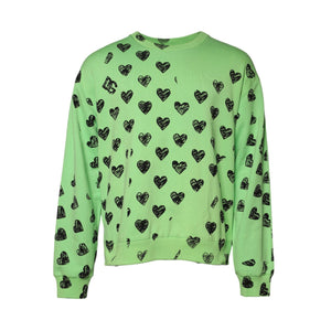 • Dolce & Gabbana Green Heart Print Crew Neck Pullover Sweater