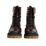 Dolce & Gabbana Maroon Leather Mid Calf Biker Boots Shoes