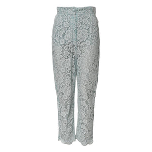 Dolce & Gabbana Mint Green Cotton Floral Lace Trousers Pants