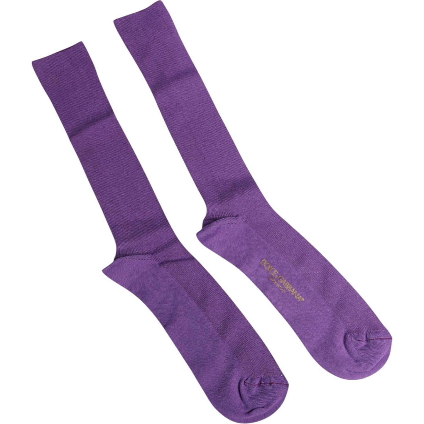 Dolce & Gabbana Purple Cotton Logo Over The Calf Socks