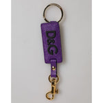 Dolce & Gabbana Purple DG Logo Leather Gold Tone Metal Keyring Keychain
