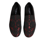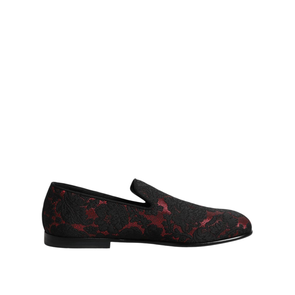 Dolce & Gabbana Red Black Jacquard Slip On Loafers Shoes