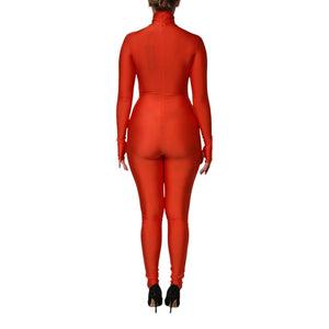 • Dolce & Gabbana Red Nylon Turtleneck Bodycon Jumpsuit Dress