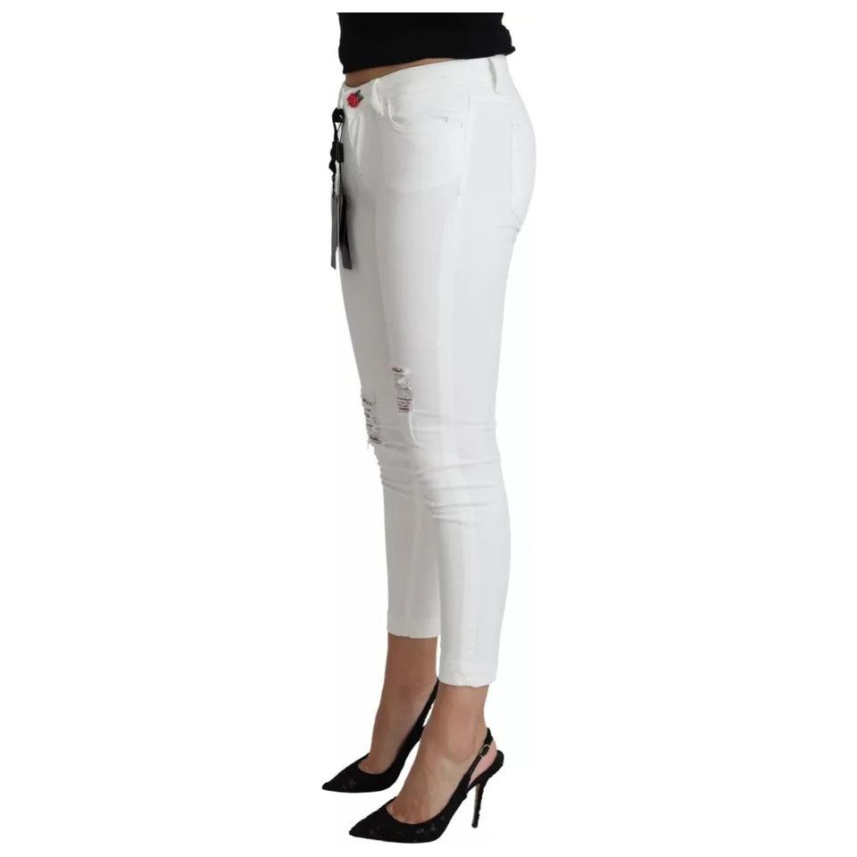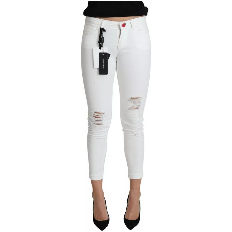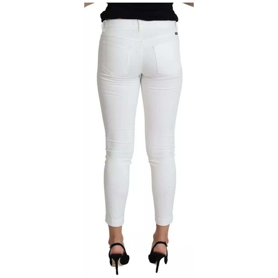 Dolce & Gabbana White Cotton Distressed Pretty Fit Denim Jeans