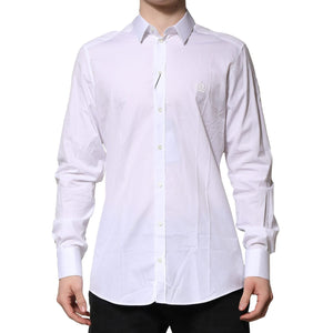 Dolce & Gabbana White Cotton Long Sleeves GOLD Formal Shirt