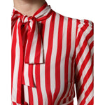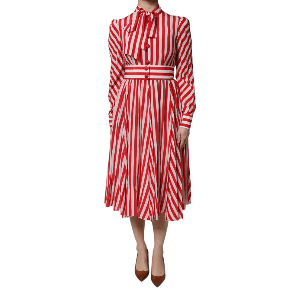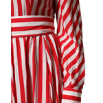 Dolce & Gabbana White Red Stripes Long Sleeves Midi Dress