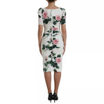 Dolce & Gabbana White Roses Print Stretch Silk Pleated Dress