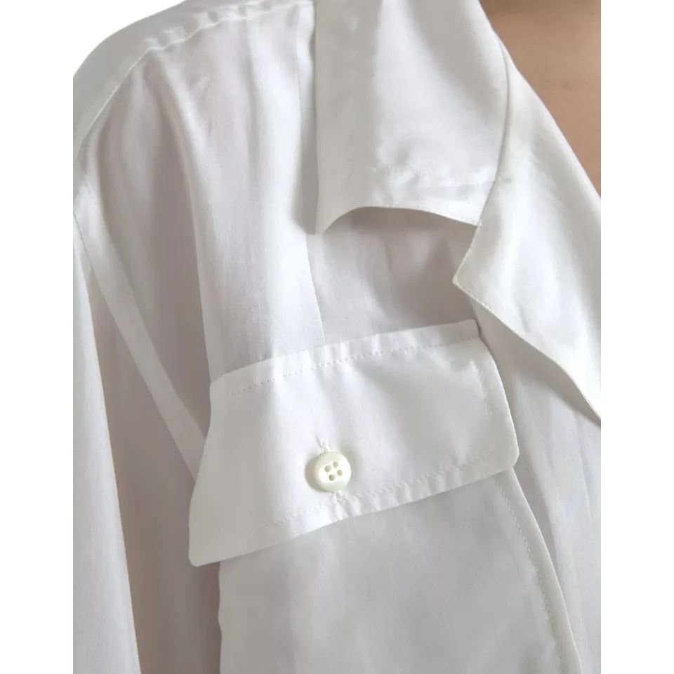 Dolce & Gabbana White Silk Collared 3/4 Sleeves Blouse Top