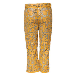 Dolce & Gabbana Yellow Floral Lace Mid Waist Capri Pants