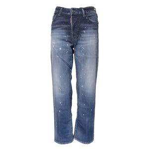 Dsquared² Blue Washed Cotton Mid Waist Straight Jeans