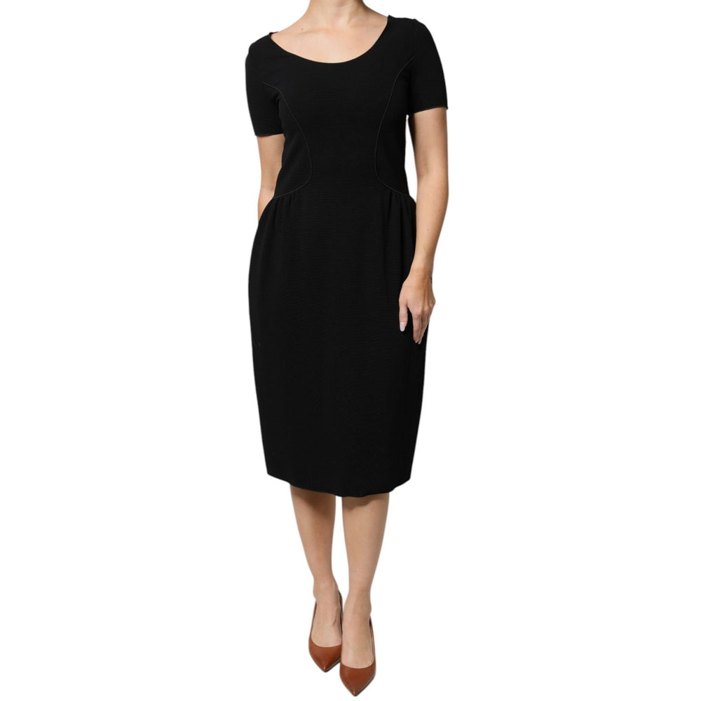 Emporio Armani Black Viscose Short Sleeves Sheath Midi Dress