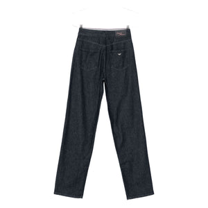 blue denim embroidered logo classic five pockets button fastening snd zip fly straight leg Wide-leg denim jeans