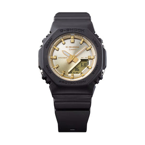 G-SHOCK Mod. OAK COMPACT SUNSET GLOW SERIE - GOLD wristwatch with gold dial, black resin strap, 20 ATM water resistance, quartz movement.